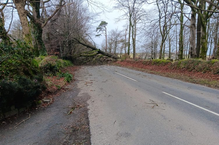 Numerous trees were toppled by strong winds and roads closed and traffic diverted as tree surgeons worked round the clock to keep roads open in West Devon, including one close to the Iron Railings junction, on the Tavistock to Chillaton road, where traffic was diverted for the day. Another tree also blocked a road at Lamerton.