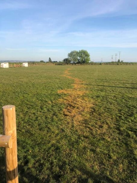 A Tavistock police spokesperson said: ‘It looks as though someone has walked across the length of the pitch with weedkiller — or something corrosive — that caused chemical burns on the ground.