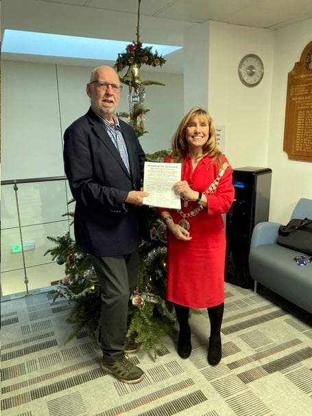 Other demands include improving services through Whitchurch (the 86 and 89 — formerly a single 89 service), increase the amount of money promised by developers to fund bus and other public services serving particular new housing estates and a commitment to a reliable service from Tavistock to Plymouth which are used by students of the boys and girls Devonport high schools (this was served by the now scrapped Plymouth Citybus 104 and 105). Graham spoke to the full meeting of the borough council when he handed the petition to West Devon Mayor Cllr Lynn Daniel in the week before Christmas.
