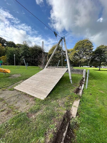 The zip wire in Simmons Park is being replaced by Okehampton Town Council.