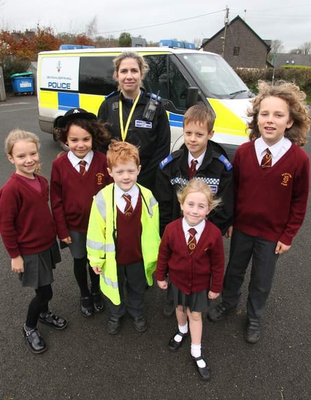 PCSO Smith, from Okehampton Police Station, visited the children on Thursday last week to mark Road Safety Week. She brought with her a police transit van complete with siren.