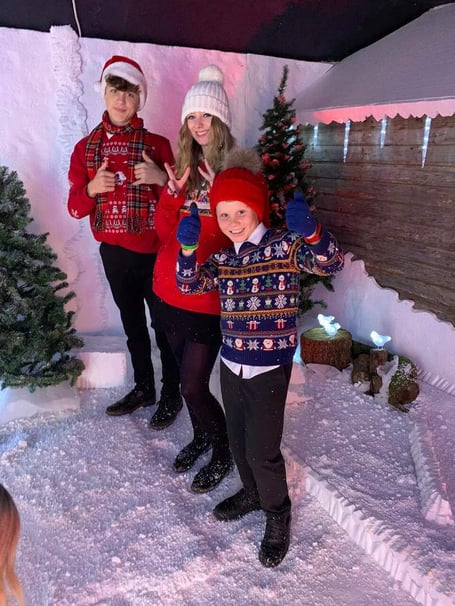 Head Caroline Kirby said ‘I am a big fan of the Merry Christmas song, it’s such a fun video and makes me feel very festive. Thinking about Prospect Lane, our fantastic Christmas grotto as a backdrop, I mentioned to our Heads of Marketing and Performing Arts that we should do a Shebbear version with some pupils, and before I knew it, it became a ‘Head’s Challenge’ to recreate this music video!