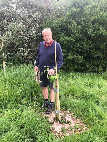 Taking off the tree guards, he was shocked to discover that the trees had in fact been sabotaged.‘The main stem on all 12 trees has been cut and then the cut piece replaced into the tube giving the impression that the tree was still intact and the leaves hiding the cuts. Some of the stems are 12mm thick and must have been cut with secateurs or similar as the cuts are clean, not broken off.’