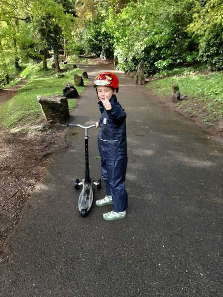 Kian’s mum Michaela said: ‘Kian loves his scooter and since lockdown he has taken it on our walk nearly every day. The other day as he was doing laps in the park, an elderly couple walked past and asked if he was doing laps to raise funds. That is how the idea was born.’