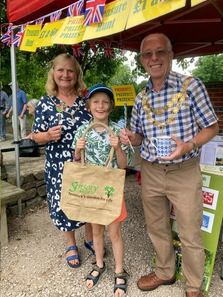 Richard thanked Café Liaison, Ellis’s Bakery, Flapjackery, The Original Pasty House and Tesco for their donations towards the refreshments. Homemade cakes and scones were also donated by some of the friends and trustees. The Lucky Dip Garden Game, designed and constructed by Annette Sharpe and Graham Parker, proved popular with the town mayor Andy Hutton and his consort Sue Hutton and Richard also thanked the mayor for saying a few words in support of the sensory garden.