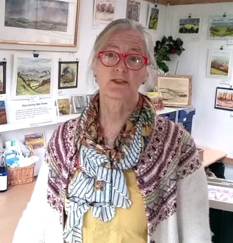 Celia mainly works with watercolour but likes to incorporate various media, including ink, pastels, collages, photographs, or items from the kitchen cupboard. One of her favourite expressions is: what if I….?. "Sometimes the experiment works, sometimes it doesn't, but it's always fun," she said. "I often have no plan when I start but experiment with ideas, and at some point, a kind of magic happens, and I know what the painting will be about. It could be of a particular place, or it could portray a feeling of the landscape. For instance, walking on the moor, you see a rain cloud – is it coming my way? Will I get wet?"