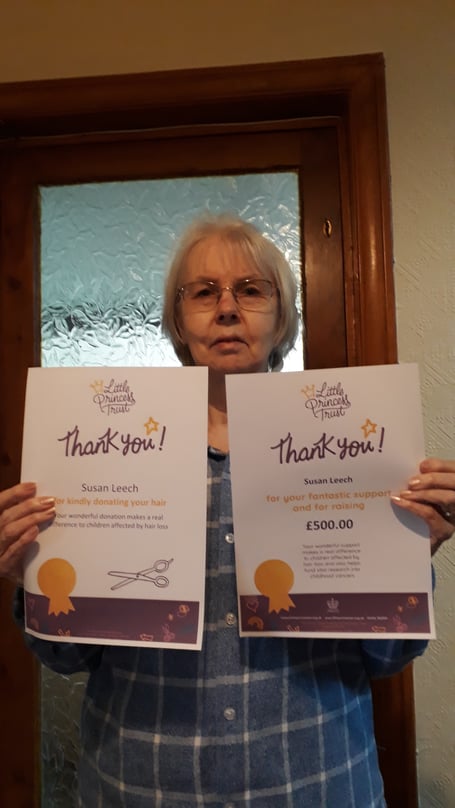 The Little Princess Trust has presented Sue with a certificate for her fundraising efforts and support for the charity.