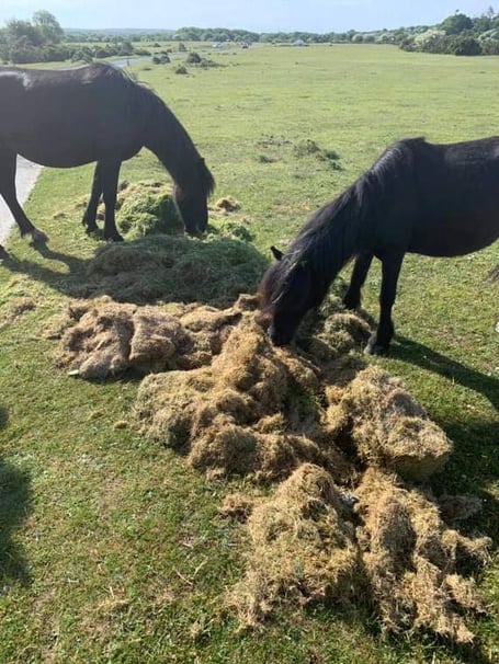 ‘Cut grass ferments and heats and although the ponies like to eat it, it can be fatal as it can cause colic. When a pony gets colic it causes acute abdominal pain and because of this the pony goes down and rolls. If they do this continually they can twist their gut which is fatal.