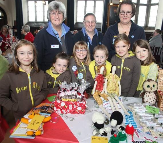 Plenty of stalls including this one from the Brownies attracted lots of Christmas shoppers and there was entertainment from the Lamerton Handbell Ringers inside while the Pudsey Day of Morris, involving ten Morris sides, was going on outside in Bedford Square.