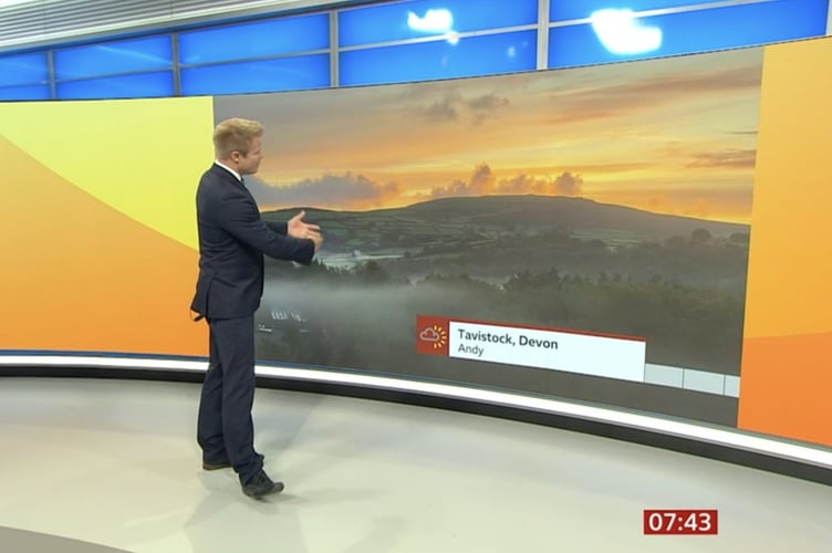 Credited as being from ‘Andy, of Tavistock’, the image on the giant studio screen glowed orange over a silhouette of a tor he can see from his home in Wilminstone, on the edge of Tavistock.