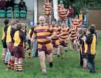 OKEHAMPTON RFC president Robert Ewen hosted his second President's Day at the club's Oakland's ground on Saturday. A training and coaching session for junior section players saw 40 youngsters take part under the guidance of visiting coaches from the RFU Northern Division who were due to play in the Presidents XV. The club was grateful to Mark Cahill, J D Dudley and Neil Dunn. The day dawned bright after a rather wet night. The pitch conditions were reminiscent of those back in the winter as more showers crossed Okehampton during the day. However, this did not deter the players from entering into the spirit of the day and producing an entertaining game. For the President's XV game against an Okehampton XV side players drafted in by the president included Dave Simms (Wellington, Taunton, Launceston, Exeter Chiefs, Gloucester, Barbarians and England), Bob Armstrong (Exmouth, Exeter Chiefs, Bristol, Royal Navy and Combined Services), Paddy Gore (Royal Navy), J D Dudley, Mark Cahill and Neil Dunn (all Yorkshire and North of England), Rob Twomey and Shaun Parkin (both Royal Marines and Withycombe). The team also included a number of players who had started their rugby careers at Okehampton but have moved on to play in higher leagues, including Richie Bolt (Exeter Chiefs, Penzance Pirates, England Under21's), Richie Friend (Okehampton, Launceston), Dean Folland (Oke Colts, Bideford), Tom White (Oke Colts, Newton Abbott), Jacob Nash (Oke Colts, Bideford, Chiefs Academy), George Hall (Okehampton, Camborne) and Dan Lee (Okehampton) Bath University). The pitch conditions did not suit the Okehampton team, who thrive on hard, dry ground. Both teams impressed with their efforts to produce an entertaining game, and there were some good passing moves producing tries for both sides. There were handling errors aplenty but Devon referee Charlie Wakeham allowed the game to flow to allow an open game which pleased the crowd. The President's teams dominance in the conditions proved decisive and they ran out deserved winners about 35-15 to give the president his revenge for last year's defeat. On a festival day the scores did not really matter, rugby was the winner and the club and the Royal Marines charity benefited from it. The club thanked all the players for their efforts. The theme of this year's day was Royal Marines 350, a celebration of 350 year since the Royal Marines were formed. When all the guests had assembled for the dinner, retired Colour Sergeant Dave Thomson marched in wearing the uniform of the Royal Marines from 350 years ago to read the Order of Assembly to the delight of the assembled guests. After the dinner President Rob Ewen thanked the day's sponsors for their generosity — Wally Wallace (Phoenix Gym) sponsored the shirts. Other sponsors were Mike Harding (Lighting Solutions), Andy Ewen (Okehampton Glass), Neil Folland (Tarka Springs Water) and Andy Dennis. The final figure raised on the day for club and charity has not yet been counted but looks to be in the order of £3,000, a fantastic achievement to follow that of last year's event. Rob had three guests from the Haslar Company in Plymouth, Lieutenant-Colonel Steve Richards RM, Captain Joe Lane RM and Marine Gus Hurst. The Haslar unit treats injured Royal Marines and helps to rehabilitate them to return to duty or in preparation for a return to civilian life. Lieutenant-Colonel Richards gave a short but insightful talk about the work of the unit and its success rate. He said its work was only possible because of the donations made from events such Saturday's President's Day and thanked people for their generosity. Rob Ewen gave a special thanks to all the club members who rallied round and worked so hard and put in a huge effort on the day to make it such a success. It could not have been done without them. He also thanked Brett Luxton. Brett has been the club's coach for a number of years but decided to step down at the end of the season. Brett took the club back into the Western Counties (West) league nearly five years ago and has helped the team to consolidate its position there. This was his last game in charge of the team and he came on as a substitute in the second half to the delight of the crowd. After the game the lads celebrated 'the Gaffer's' last game by unceremoniously dumping him in a muddy puddle in the middle of the pitch. Such is life in a rugby team! The club is fortunate that Brett, his wife Jo and their family will be staying on as members of the club where they know they will always be welcome. The club is now looking forward to the new season, which starts in September.