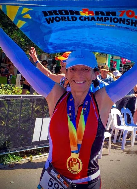 The Tavistock triathlete’s main aim was to come in the top 40 in her 55-59 age group; a goal she surpassed by coming 32nd in the world out of 80 female competitors and was the first Brit to cross the finish line in a time of 6hrs and 06 minutes.