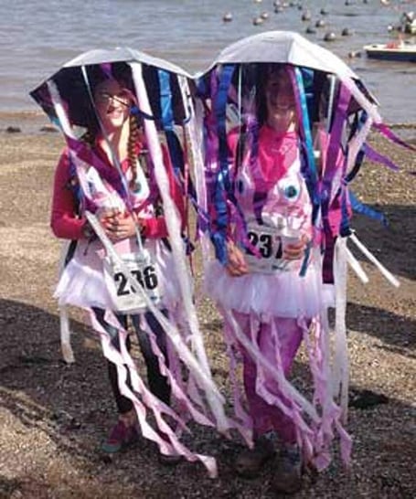 Along the way Laura Newton (left) and Emma Coole found there were stops to sample a wide variety of the finest local produce. The theme this year was ‘under the sea’ so Laura and Emma dressed as jellyfish with hand crafted hats which proved very difficult to run with in the narrow woodland trails and the windy open fields. They both said it was a fantastic event and are looking forward to the next one.